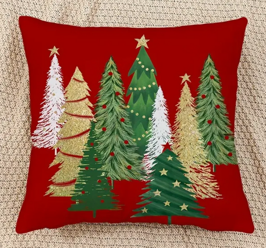 Christmas Pillow Cover - red or green w/ multi trees