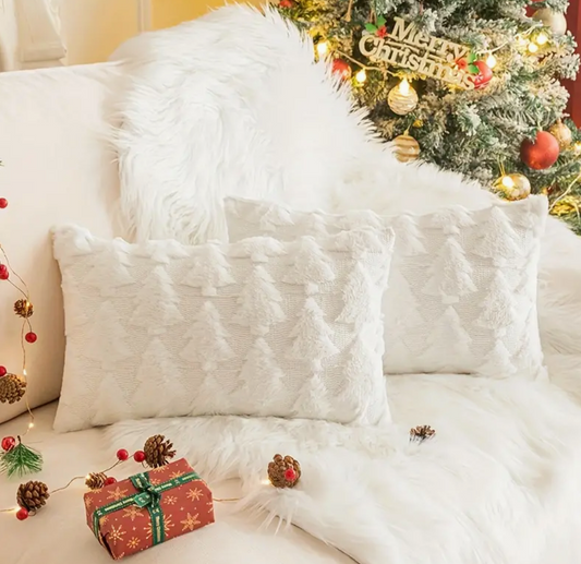 Christmas Pillow Cover - red w/ white trees